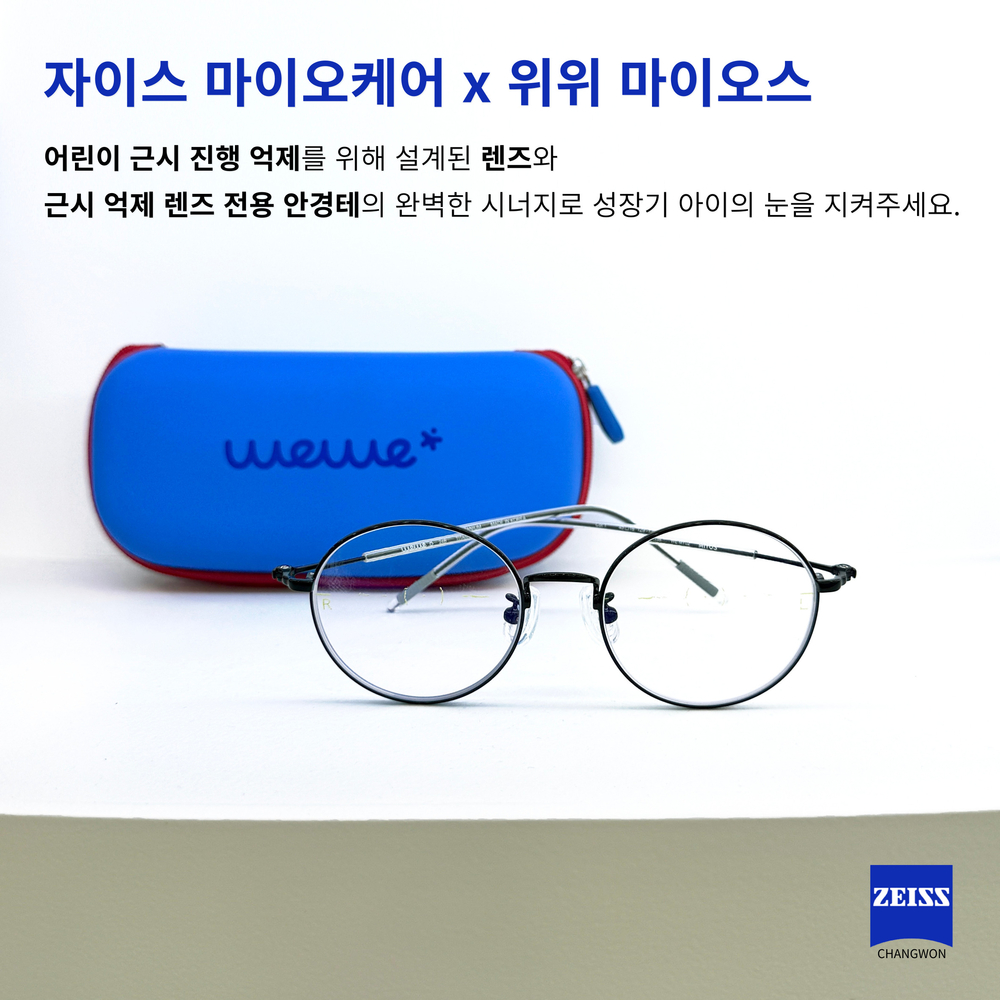 : 자이스 비전센터 창원점에 방문하여 자이스 마이오케어 렌즈 구매 시 근시 억제 렌즈 전용 안경테 위위 마이오스 wewe miyos 무료 결합 증정